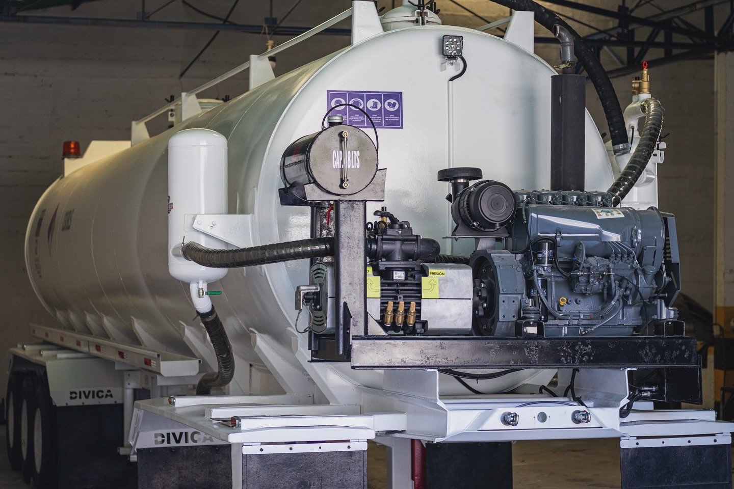 Tanque diseñado para el transporte y almacenamiento seguro de diésel o gasolina. Cumple con normas de seguridad para aplicaciones en energía, transporte y minería.