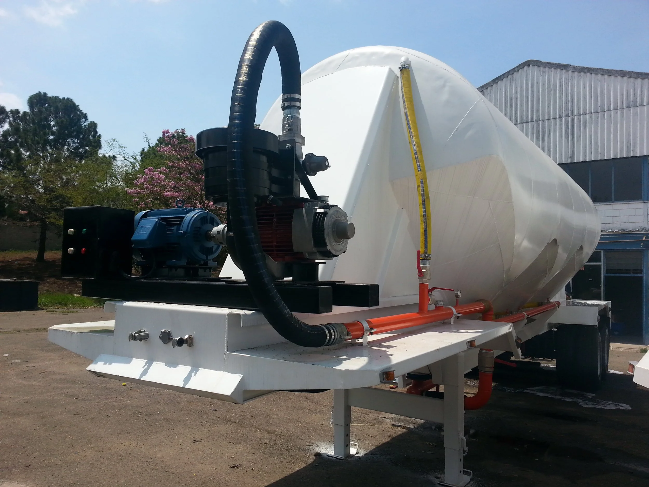 Cisterna neumática especializada en el transporte de cemento, cal, harina y otros productos pulverizados. Eficiente y segura para el sector de materiales de construcción y alimentos.