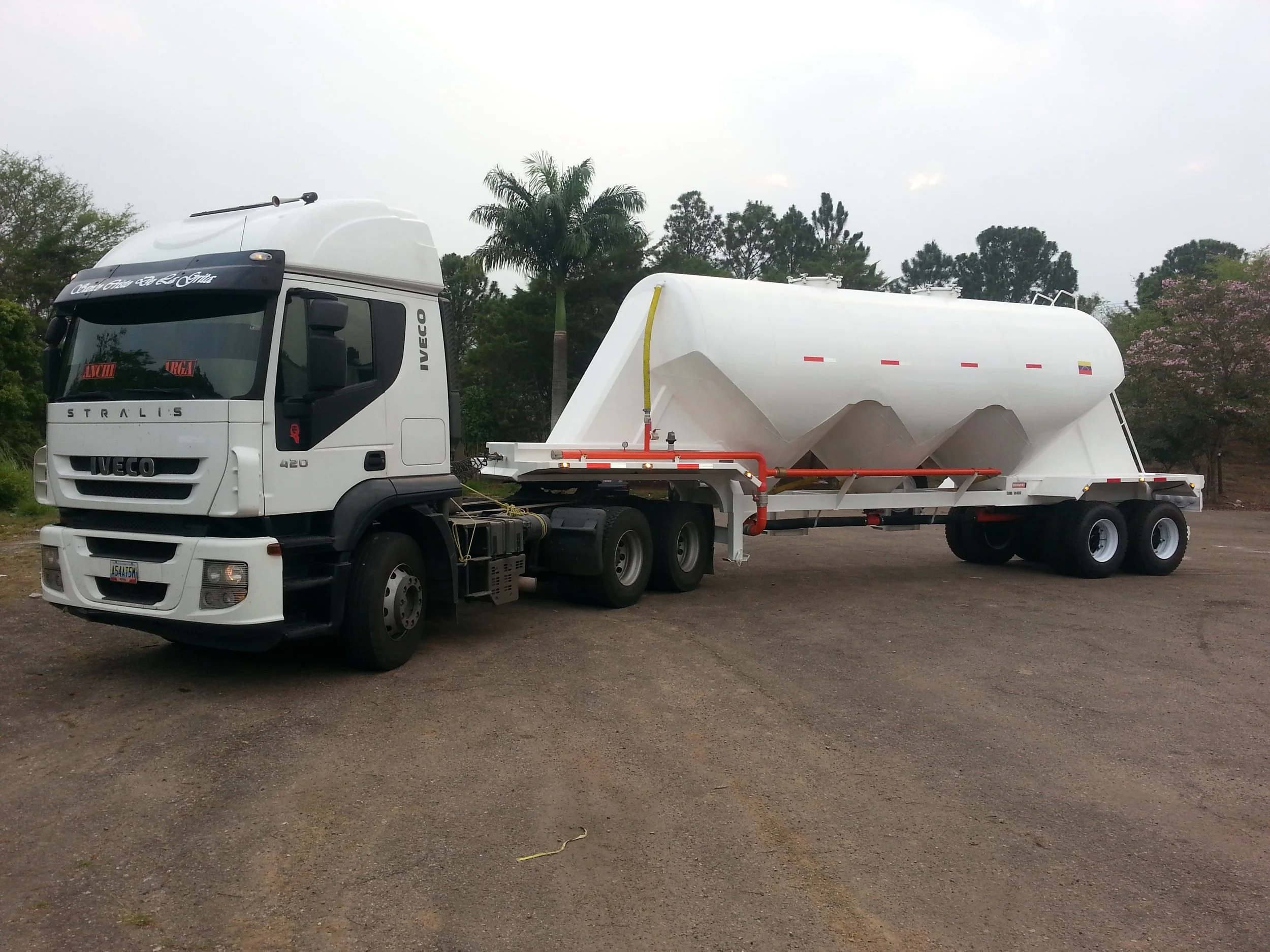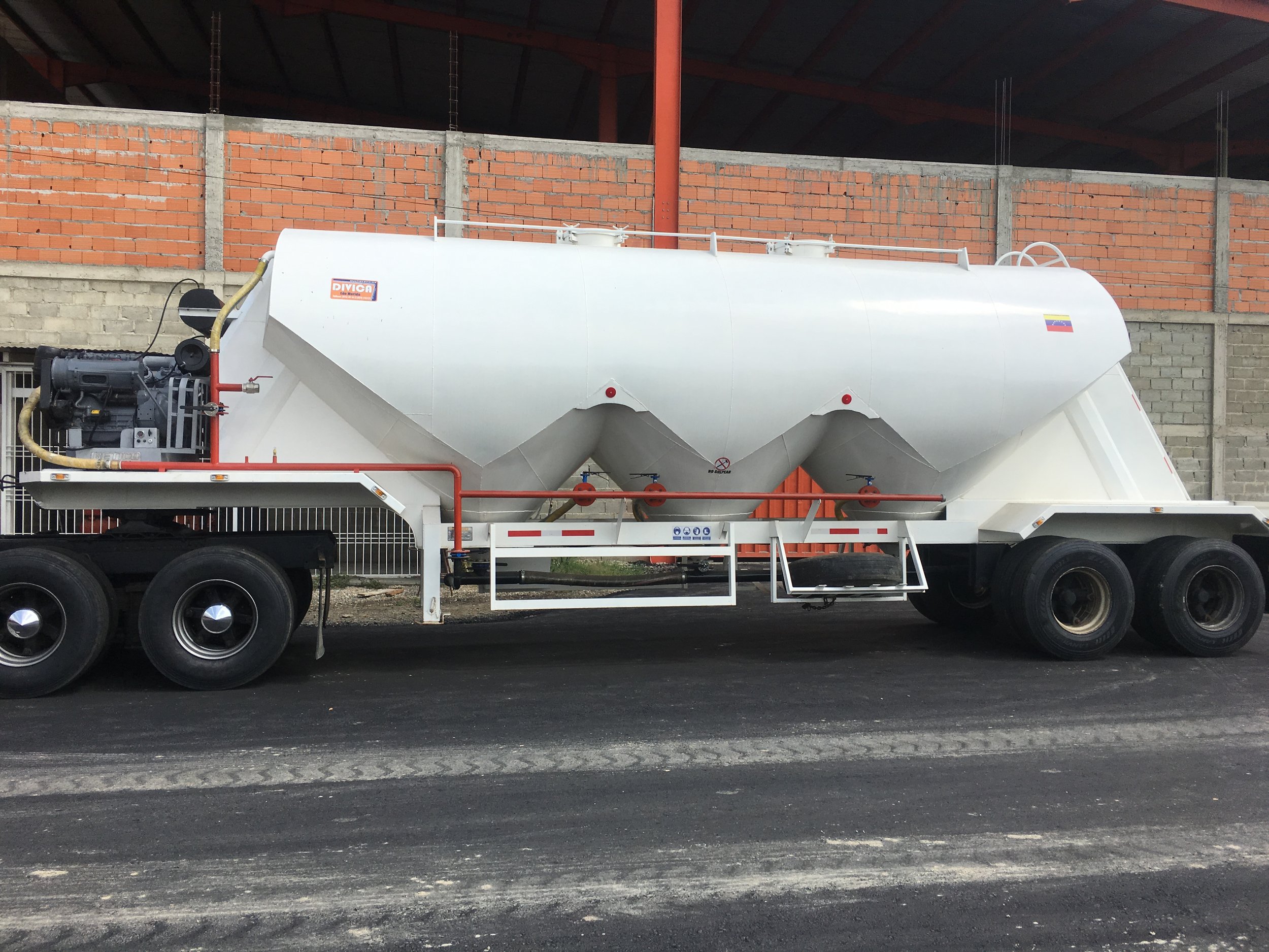 Nuestra cisterna está diseñada para el transporte de productos pulverizados como cemento, cal, harina o materiales similares.